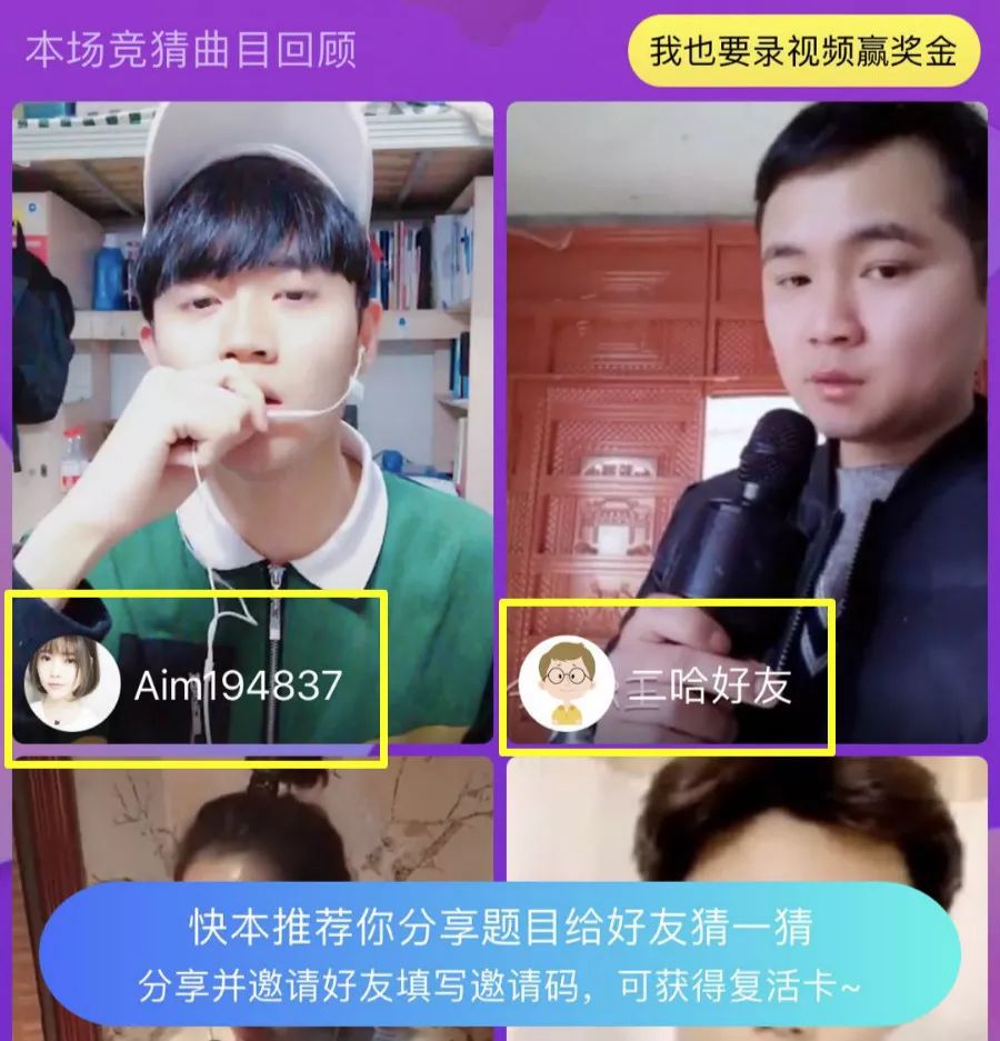出题人也非专业主持人,而是用户上传的20秒清唱视频,若视频被选入竞猜题库,用户将获得额外红包奖励。