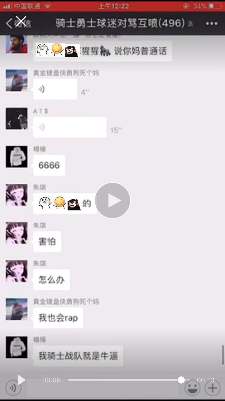 互喷群组好后双方开始互怼,形式多样,在骑士勇士球迷对骂群里,群友甚至喷出了Bbox。