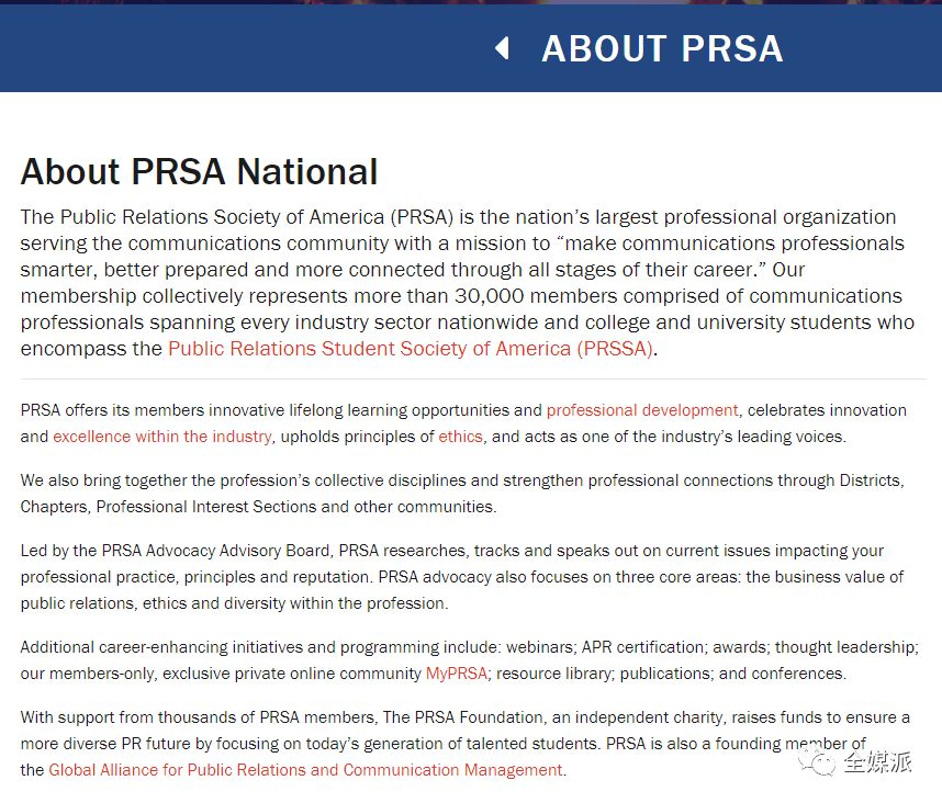 为了弥补学界和业界之间交流的缺乏,上世纪50年代起美国成立了诸多公关协会。其中,有着广泛影响的有美国公共关系协会(PRSA)、国际公共关系协会(IPRA)等。