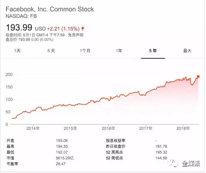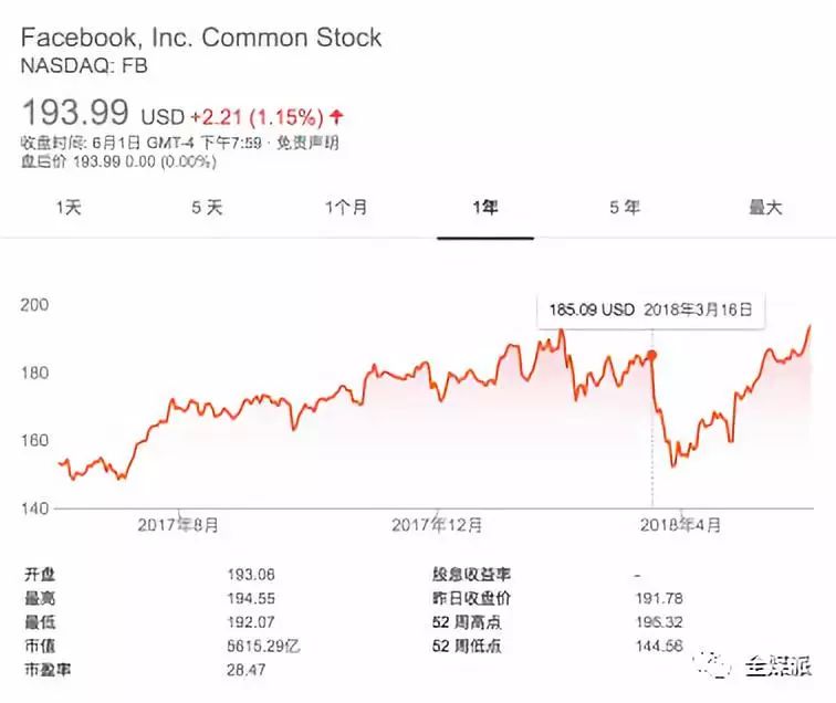 在3月27日股价触底后,虽然依然处于争议漩涡中心,但是Facebook的股价已经开始震荡回升。在6月1日,其股价已经恢复到193.99美元,这是Facebook历史股价的新高。
