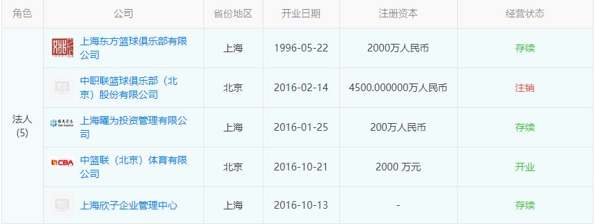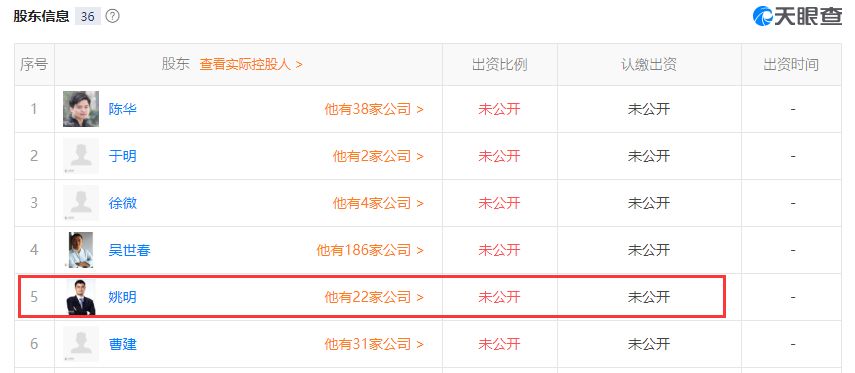 ▲姚明担任了5家公司的法人(数据来源:天眼查)