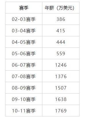 作为第一个进入NBA名人堂的中国球员,第一个球衣被退役的中国人,姚明的在NBA的9年职业生涯无疑是成功的,年薪也从最初的386万美元涨到了1769万美元,具体如下: