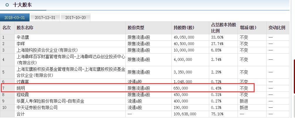 姚明并非首次在股市上尝到甜头。早在2007年,姚明投资合众思壮公司,以每股1元价格买入了37.5万股,上市之时身居第六大股东,持有公司67.5万股。由于头顶姚明光环,合众思壮备受投资者追捧,公司在2010年上市后股价一路攀升,姚明的持股市值也一度超过7000万元。目前,姚明夫妇已经不在公司前十大股东之列,具体持股情况也不得而知。