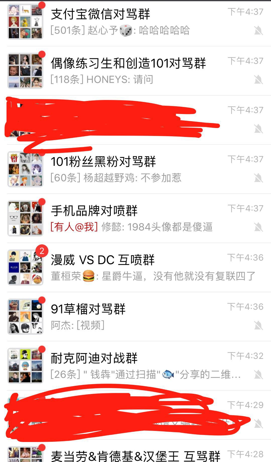 还有的对骂群,根本就骂不起来,比如摇滚VS民谣VS说唱互骂群。