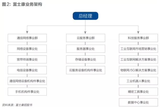 工业富联也提到对外输出物联网与工业互联网解决方案,其组织架构上设立了科技服务事业群,之下包含工业互联网市场营销事业处、物联网/5G解决方案事业处两大组织,定位应在于输出技术服务。