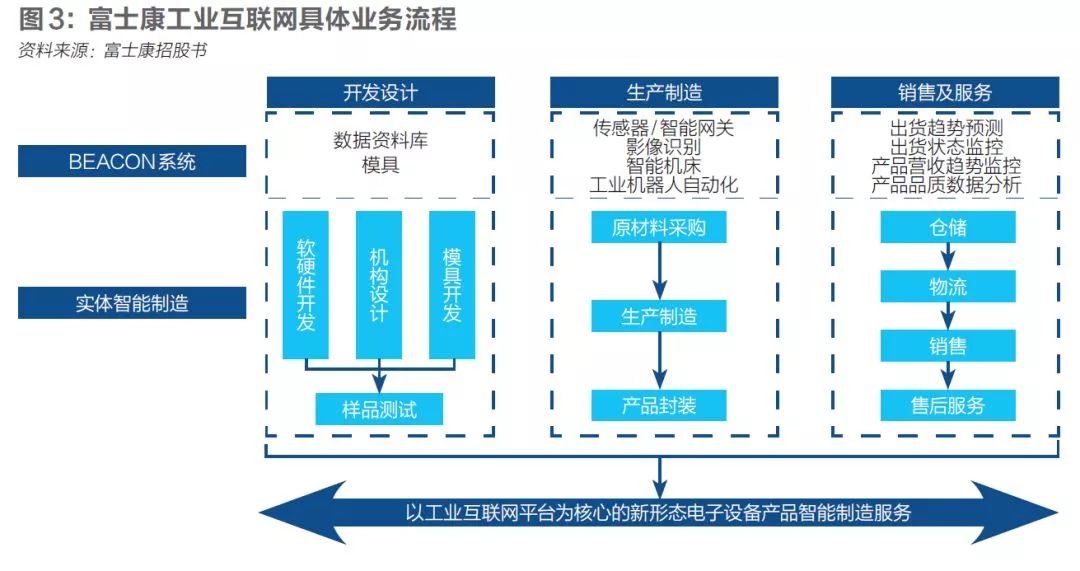 工业富联在招股书中写道,该公司2015年开始研发工业互联网平台BEACON,并于2016年1月正式将平台应用到了自身的生产流程当中,目前已陆续在各制造基地引进。