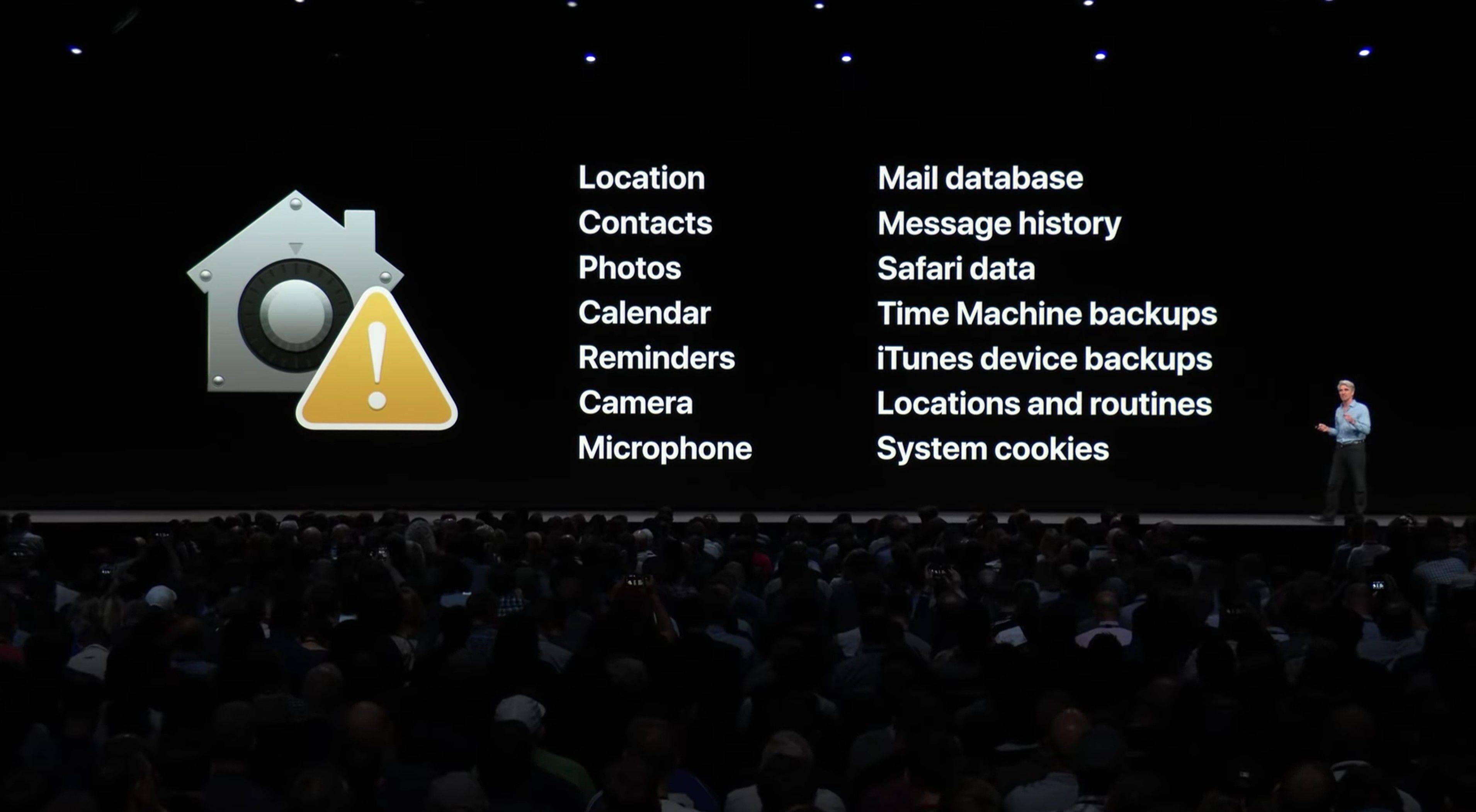 苹果特别在乎的最后一件事是「隐私」。从 Facebook 的丑闻开始,这场隐私旋风席卷了整个科技圈。GDPR 通过立法让科技公司必须相对更尊重用户的隐私,但仍有大量的科技公司正在试图通过法律和道德的漏洞来攫取利益。苹果在今年的 WWDC 上也继续通过自己的技术和产品设计加强了对用户隐私的保护。在 macOS 上,各种 App 需要访问你的数据以及敏感功能时,也像 iOS 一样需要获得你的明确授权了。当你通过 macOS 和 iOS 的 Safari 浏览网页时,苹果会通过 Safari 对你的各种信息进行保护和混淆,使那些网站将更难以通过 Cookies 追踪你的特征,获取你的数据,卖给广告商以进行精准的广告投放。