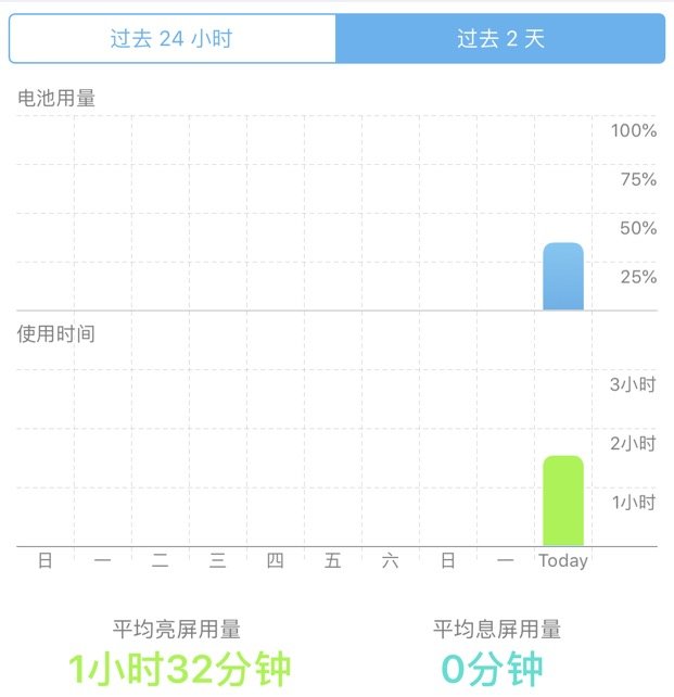 由于测试机更新 iOS 12 只有两天,因此电池用量只显示「过去2天」