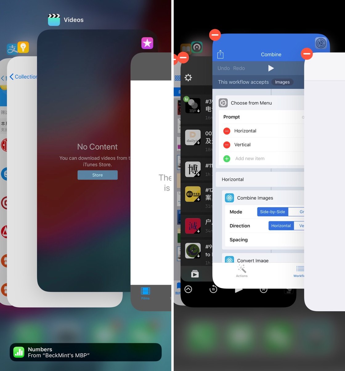 iOS 12 中,iPhone X 上关闭多任务手势和 iPad 进行了统一,直接上划即可关掉应用,不再需要重复「长按 - 左上角出现红色角标 - 上划关闭」这一繁琐的流程。