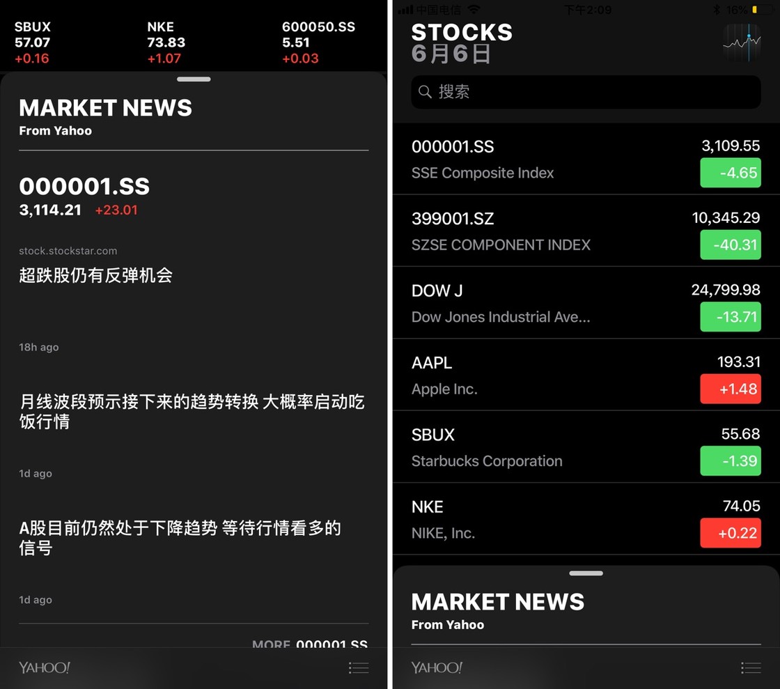 全新设计的股市应用中除了可以查看股票信息以外,还内置了由 Apple News 提供的财经新闻,即便是中国大陆地区的用户也能看到。