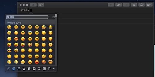 在 macOS Mojave 中,原生邮件应用的新建邮件界面上增添了全新的 Emoji 选择器,方便你更快地输入 Emoji。