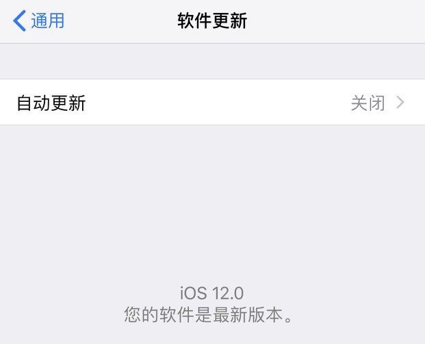 在 iOS 12 设置中,用户可以进入「通用 - 软件更新 - 自动更新」中选择是否允许 iOS 设备是否自动更新系统。