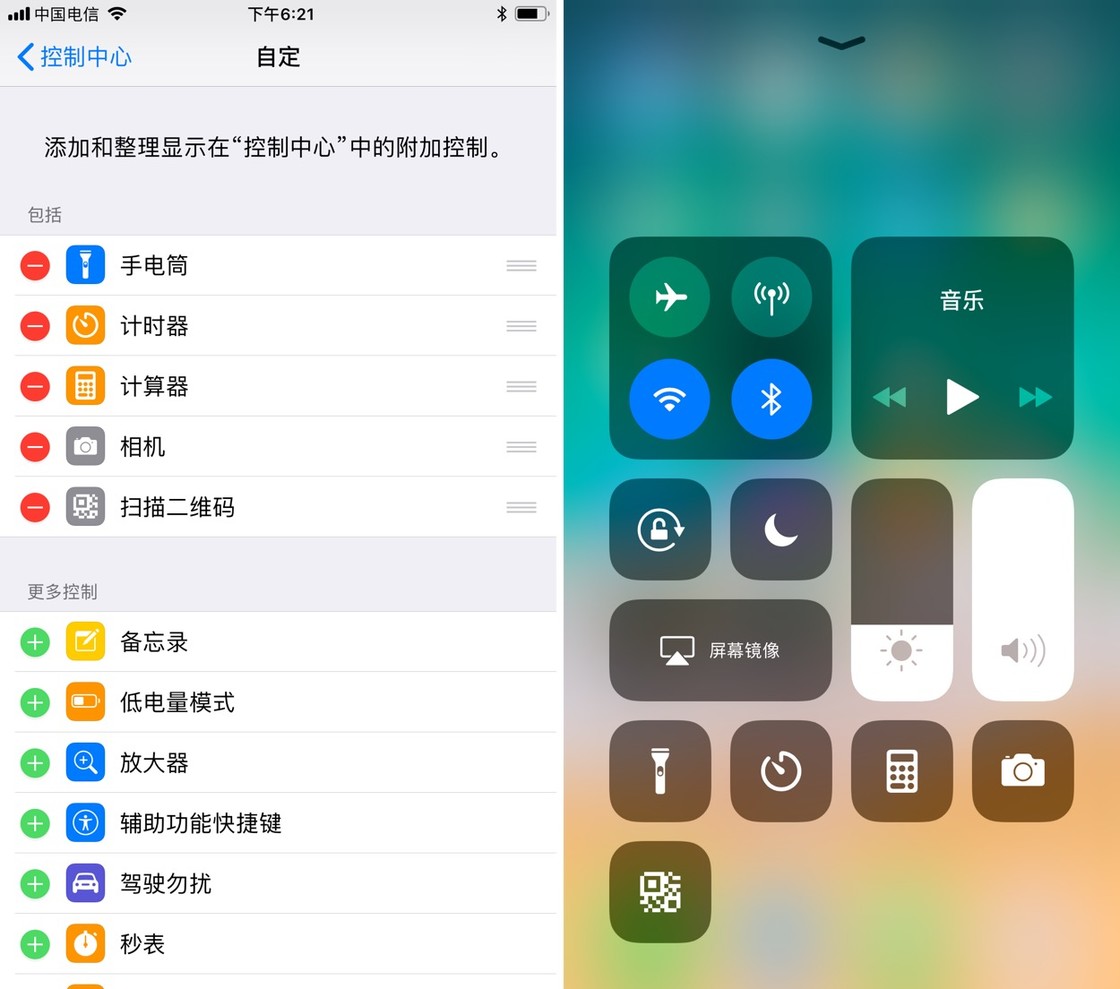 现在用户将可以自由调整控制中心面板中的快捷按钮,保留自己最常用的功能。