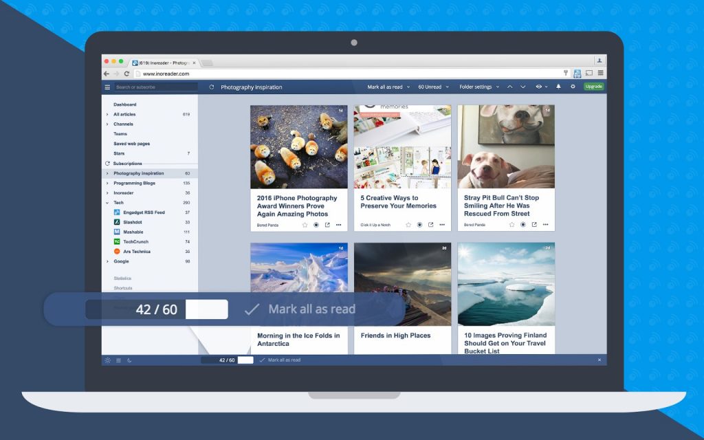 Inoreader 网页版的界面