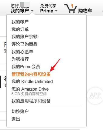 首先,在亚马逊官网登录账户,点击右上方的「我的账户」-「管理我的内容和设备」。