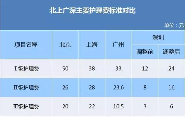 以深圳这个一线城市为例,在去年底公立医院价格调整之前,护理费的标准已经维持了 10 年。而在此前,III级护理每天的收费标准为 3 元,护理内容则为每隔 3 小时巡视 1 次、掌握患者病情及思想情况、测体温脉搏呼吸等。而即使是现在翻了一倍到了 6 元,这样的标准也与其他几个一线城市有差距,更别提其他的城市乃至是农村的基层医疗卫生机构了。