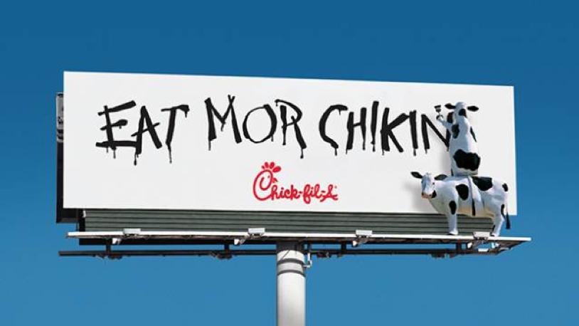 有一家叫福乐鸡(Chick-fil-A)的炸鸡店,全美有超过1700家分店,美国餐厅顾客满意度排第一。好的产品自是不用多说(虽然我没吃过),在营销上福乐鸡让人最印象深刻的是,他们品牌吉祥物……是奶牛……