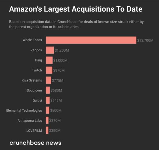 尽管收购全食超市是亚马逊迄今最大的一笔交易,但它肯定不是亚马逊收购的唯一一家零售公司。其他交易还包括亚马逊收购Quidsi (Diapers.com和Soap.com的母公司)、鞋类和服装零售商Zappos以及中东电子商务网站Souq.com。