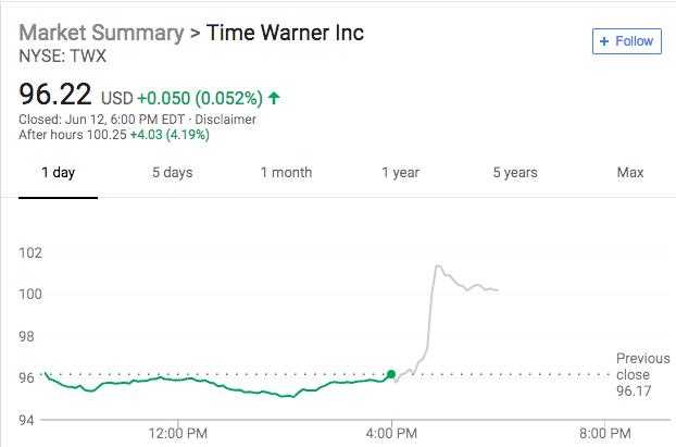 美国反垄断法院作出裁决,无条件批准AT&T以850亿美元收购时代华纳的交易。本次合并后,媒体行业将诞生一家横跨电影制作、电视频道、卫星、手机网络以及光纤电缆的新巨头。新公司的市值将达到约2750亿美元。时代华纳股价盘后涨3.6%,AT&T则跌1%。 21世纪福克斯涨5%,康卡斯特跌2.1%,迪士尼跌1.5%。