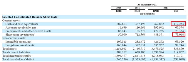 此外,2017年的现金数额相当可观。 如上图所示,Bilibili显示了1.17亿美元的现金和现金等价物。 考虑到2.78亿股,每股总现金等于每股0.42美元。