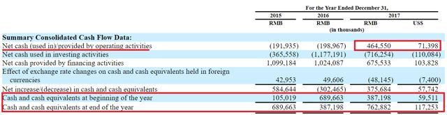 其实比负净收入更重要的是公司是否产生经营现金流。2017年,B站拥有经营活动提供的净现金7,140万美元。