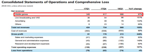 营收上,B站依靠游戏把流量变现,游戏占比80%。一季度保持了97%的高速增长。同期移动游戏行业增速仅为12.5%。
