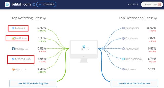 推介的数量非常少,其中只有19.49%的访问者来自百度
