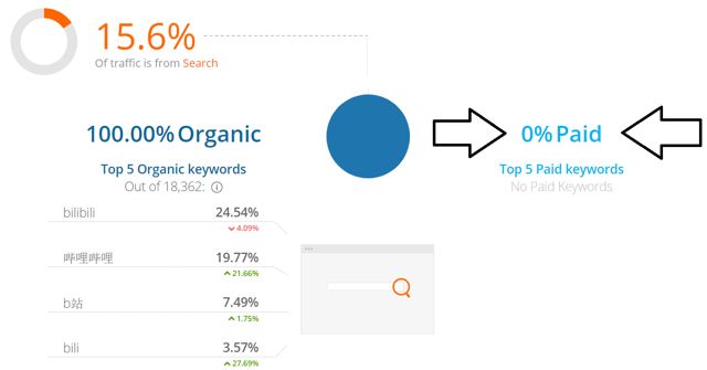 该公司是否为流量付费? 不,B站是不支付关键字搜索的。这边让B站区别于BAT 和传统的引流产品。