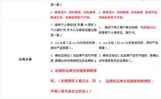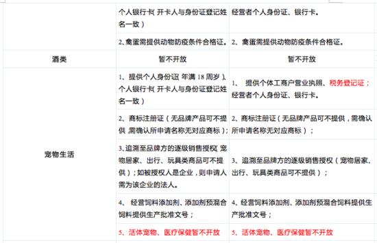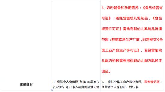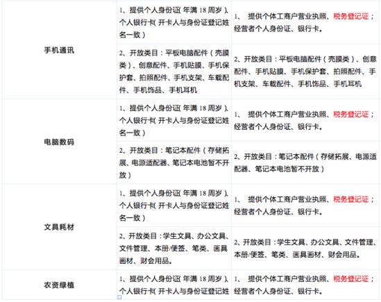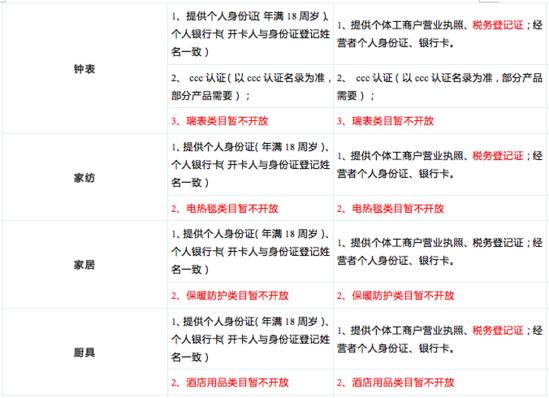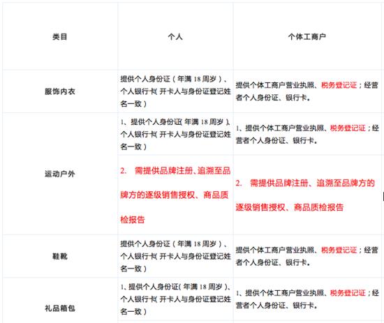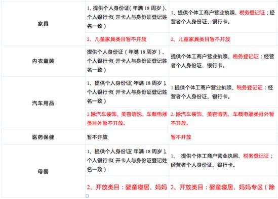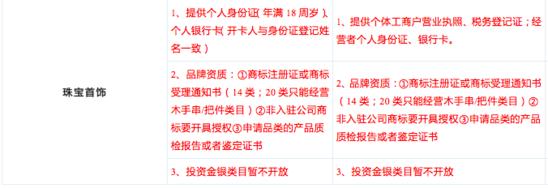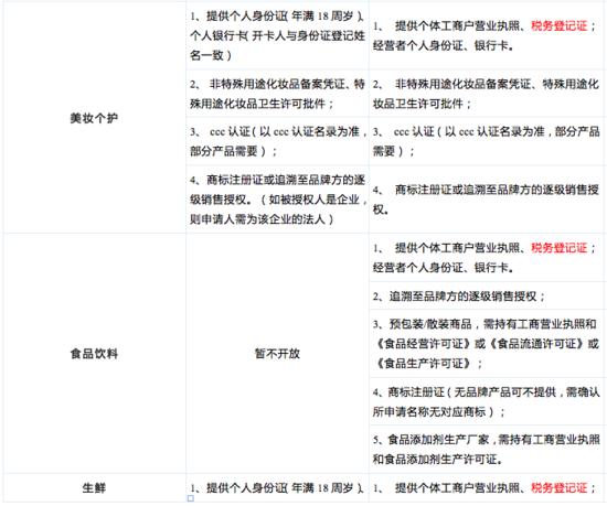 具体类目及入驻要求如下: