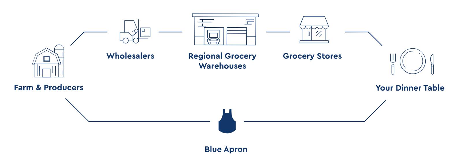 Blue Apron通过这张图,想要说服用户,让他们觉得,将从生产商开始的整个供应链消灭掉,对用户有好处。我们可以从最左边,农场和生产商开始。