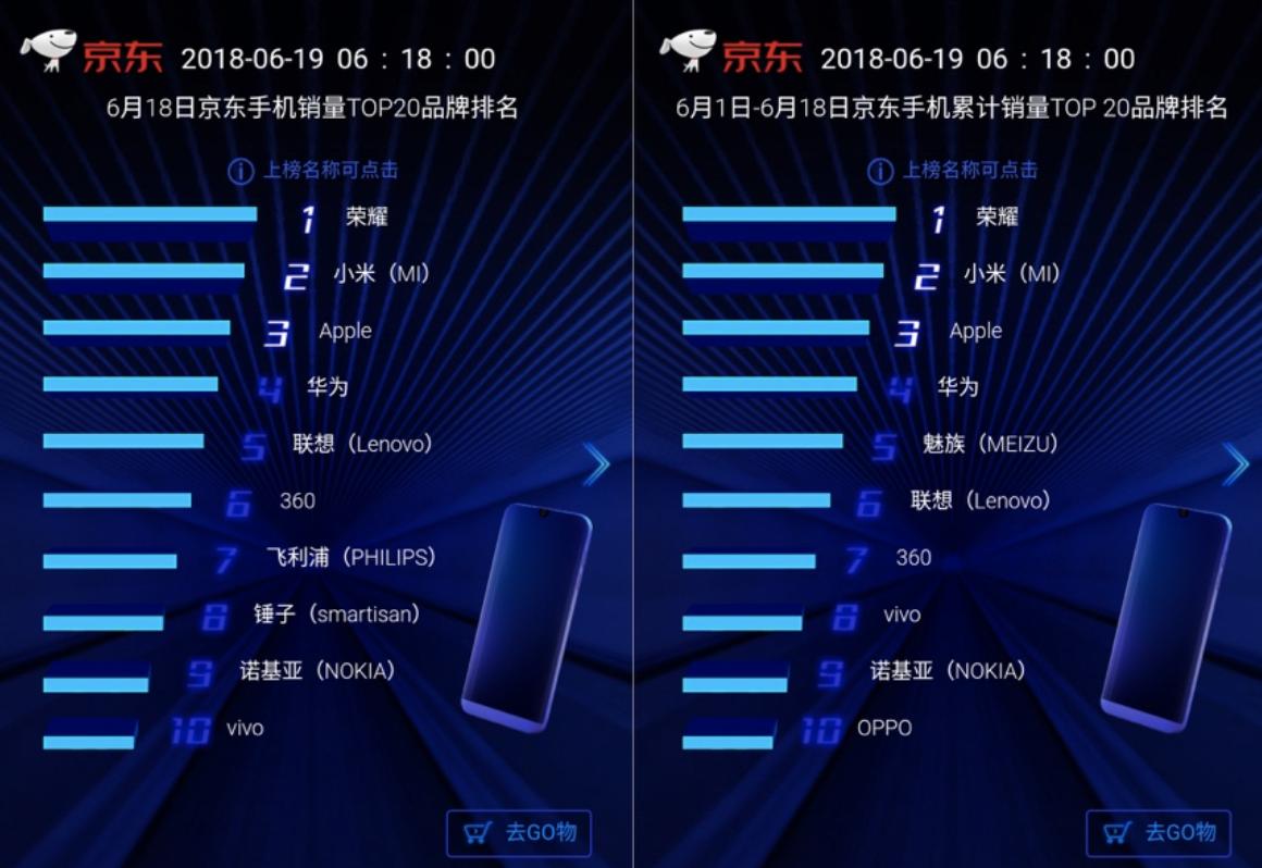 19日下午,京东手机通讯官方微博正式发布618战报,坐实荣耀夺得京东618手机品类累计销量冠军和手机品类单日销量冠军。