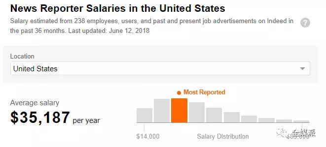 美国新闻记者薪资水平,数据来源:Indeed.com