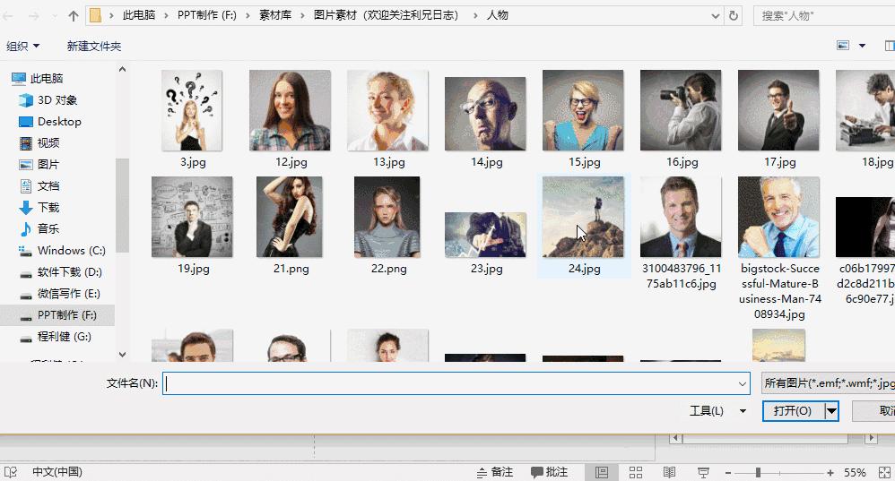 然后将这些素材导入到PPT中,通过形状填充图片,就可以制作出笔刷效果的图片了。