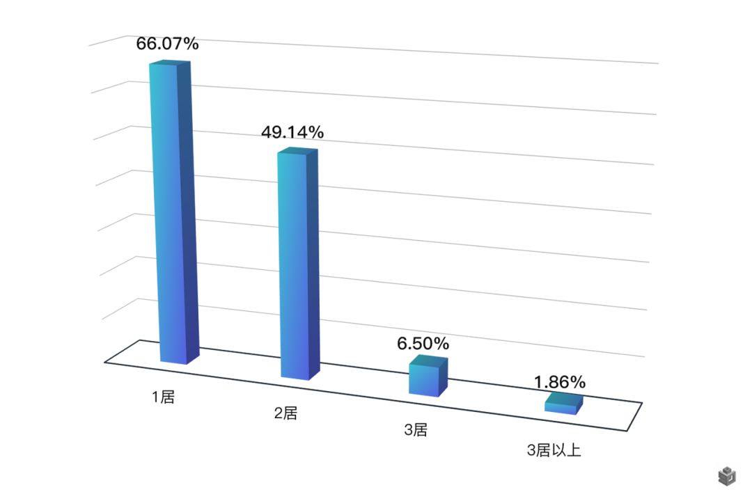 从关注户型来看,有高达66.07%的人搜索过一居,近半数的人搜索过两居,关注三居及以上户型的,总占比不超过10%。这组画像,符合艾普大数据过去对90后消费特征的画像:想独立、要品质、不敷衍。