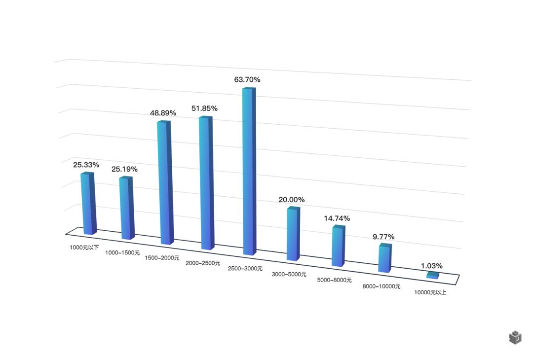 从关注租金来看,1500-3000元是关注度最高的价格区间。其中,搜索过2500-3000元房源的人,占比高达63.7%!麦可思研究院调查数据显示,2017届大学生毕业半年后月收入为4774元。这意味着在北京租房的大学生,有相当一部分人要用一半以上的薪水支付租金。如果想整租,离开家庭的支持是很难实现的。