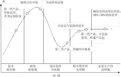 高德纳公司发布的新兴技术成熟度曲线很好地展示了产业生命周期理论,如图2-1所示。