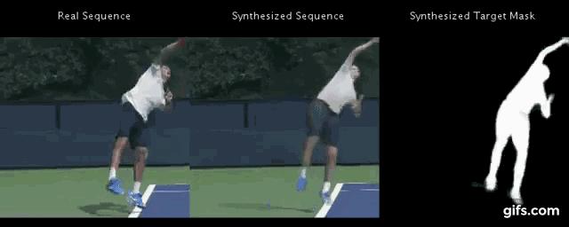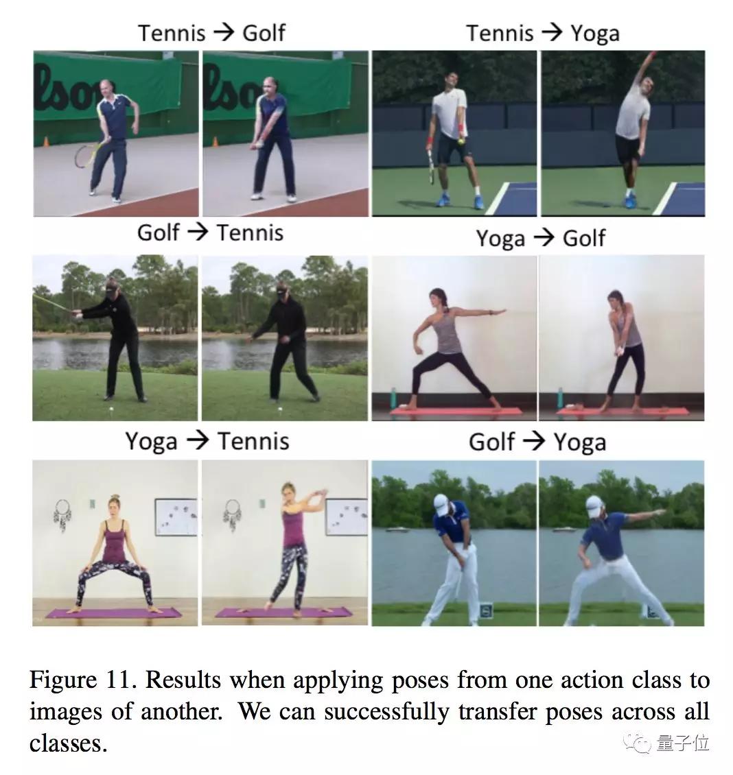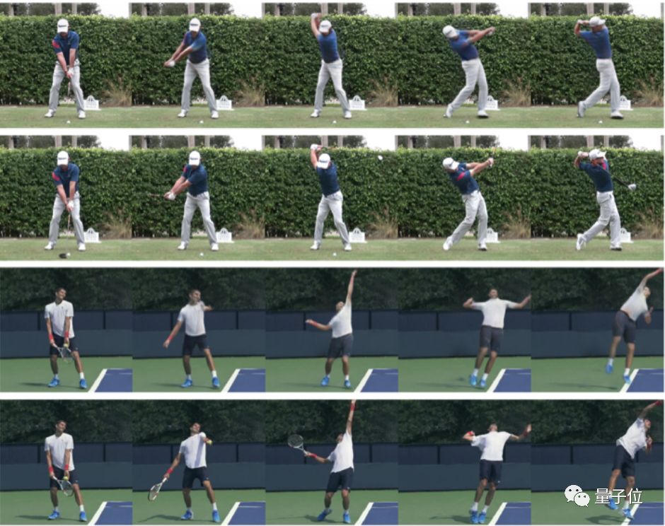 上图展示的,都是从一个网球动作到另一个网球动作,从一个健身动作到另一个健身动作,而且,还都是,静止的图像。