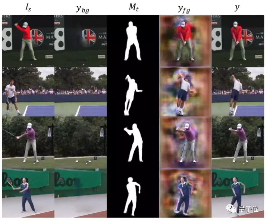 此时,完事具备,就差背景了。背景合成也就是填补前景动作中开始被遮挡的部分,如上图第五列所示~