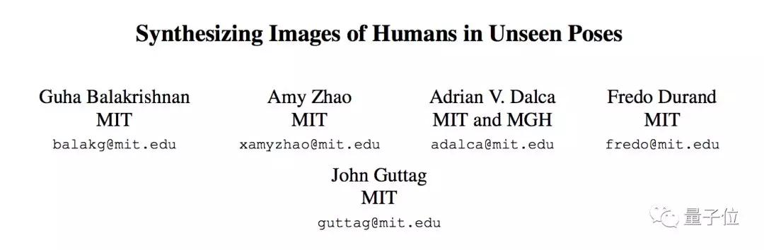 这篇Synthesizing Images of Humans in Unseen Poses,被CVPR 2018作为oral论文接收,论文一作,是MIT博士后Guha Balakrishnan,他的硕士和博士学位都来自MIT。