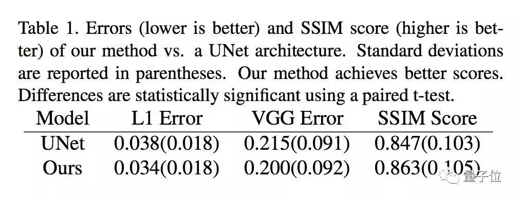 从数据上看,这种新方法也取得了比UNet更低的错误率、更好的SSIM得分。