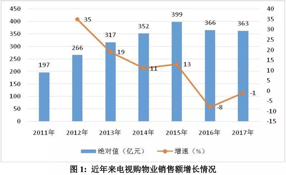 《报告》显示,2017年全国获得电视购物经营许可的34家企业实现销售额363亿元,同比小幅下降1%,降幅比上年收窄7个百分点,市场规模趋于稳定。