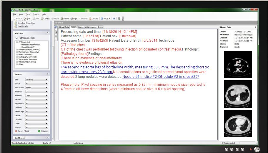 StreetInsider报道指出,一份2018年由Matt Brown(UCLA的博士生)出具的评估报告提及RADLogics的软件可以与PACS(医学影像存档与通信系统)整合,整合系统可节省放射科医生读取报告47%的时间。研究表明,使用该系统检测的结节精准度误差控制等于或小于1mm.