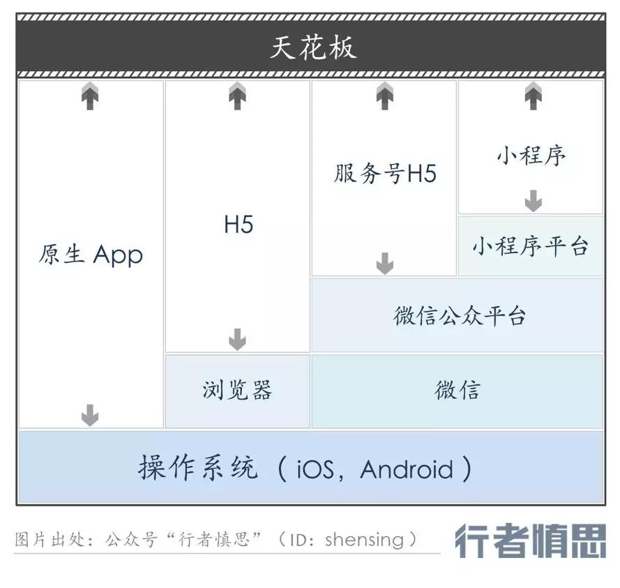 小程序又是建立在微信公众平台上面的,它一方面享受到公众平台的账户登录、客服通道,还能享受到小程序平台给出的更多原生接口。微信帮开发者把原生浏览器的重要功能提取出来,并封装到小程序里了,门槛低了,开发者就站在巨人的肩膀上,但它让天花板效应很明显。