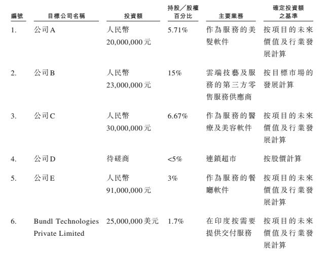 上述投资将以现金形式完成,所有目标公司及其最终实益拥有人,均为该公司及其关联人士的独立第三方。