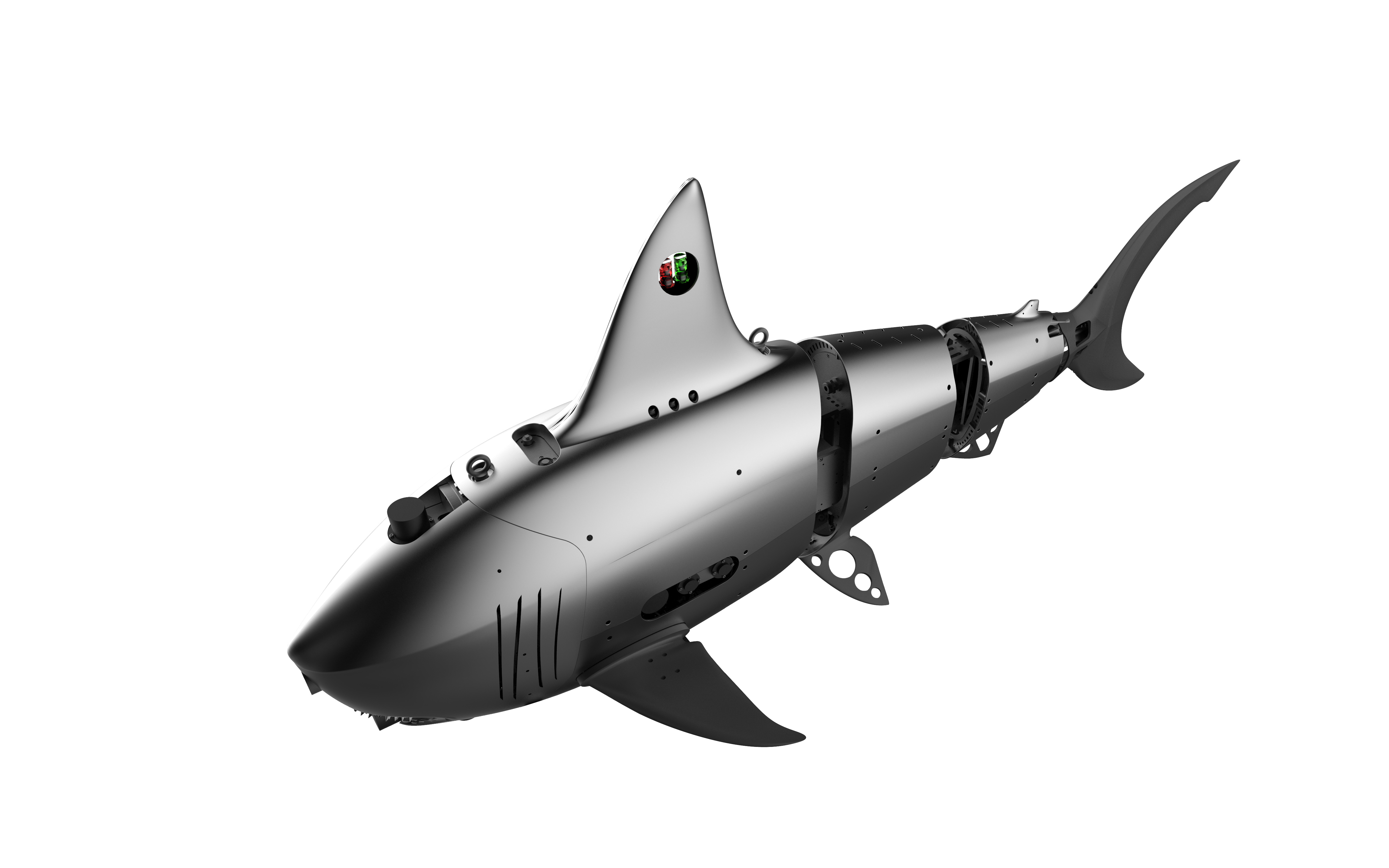 ROBO-SHARK定位为高航速、低噪音的远洋仿生水下机器人平台,可执行快速抵近、高机动巡逻等任务,具备水下目标高速追踪功能。