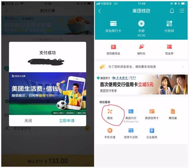 而to C的产品最早是与招联消费金融合作,为其导流。但在2017年10月,美团上线了自营的小额现金贷款产品——“美团生活费”,日利率0.05%,申请入口同样在美团钱包的“借钱”一栏中。