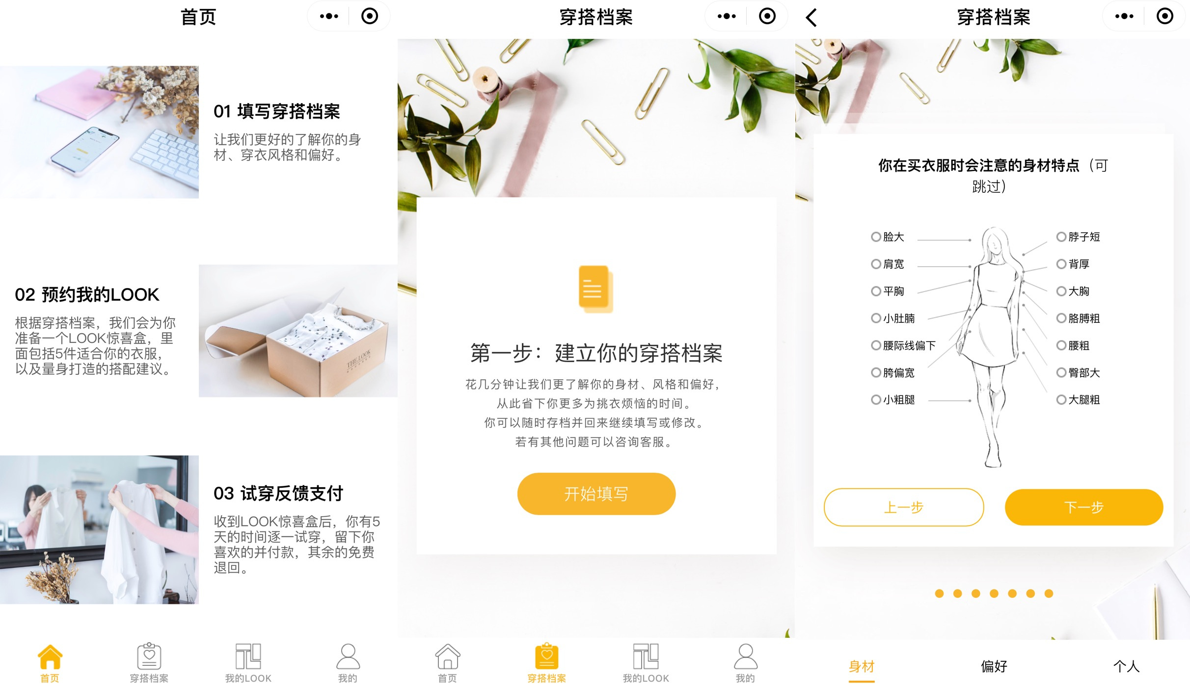 在服务形式上,和其他所有数据型电商一样,TheLook 的用户需要在小程序上先提交详细的身材、风格、款式需求偏好等信息,需求提交后就可以获得服装“盒子”,并决定是否购买,而对于没有选择购买的产品,团队也会收集消费者对于这些产品的反馈。
