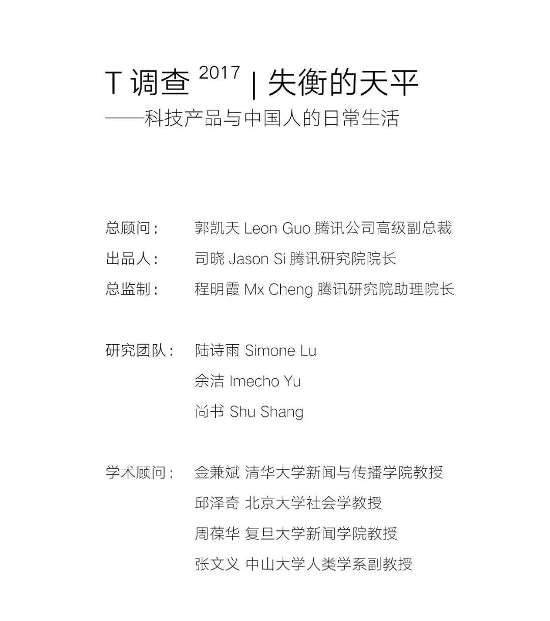 回避问题并不能解决问题,而解决问题的第一步是认识问题。腾讯研究院S-Tech工作室正式发布调查报告《T调查2017:失衡的天平——科技产品与中国人的日常生活》,通过大数据结合传统调研研究,我们想要做一支刻度精准的「温度计」,测量全民的「科技体温」,把脉中国人对科技产品的真实感知。