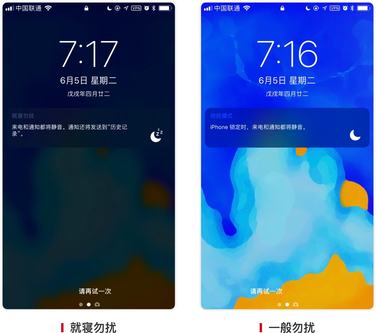 勿扰模式在 iOS 12 中新增了就寝模式,通过「设置 - 勿扰模式 - 设定时间」打开。打开后锁屏的亮度会降为低亮度,相比原本地勿扰模式有明显的区别,避免强烈光线影响用户睡眠。就寝时,期间的来电和通知都会被静音,并且自动为你保存在历史纪录中,用户体验非常好。