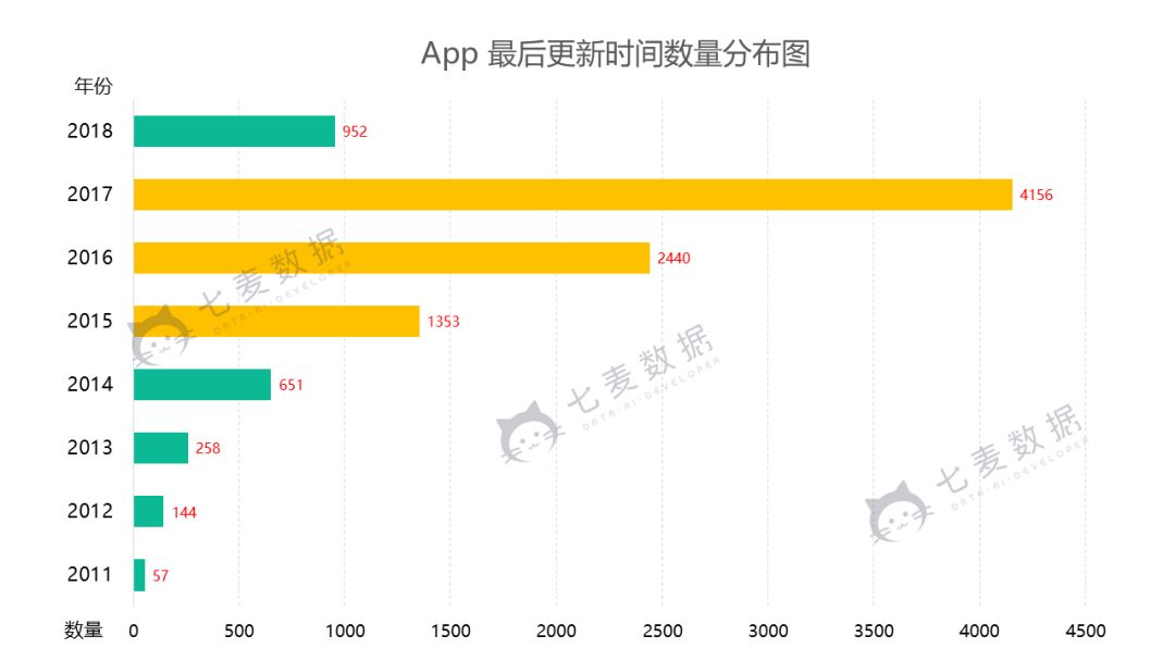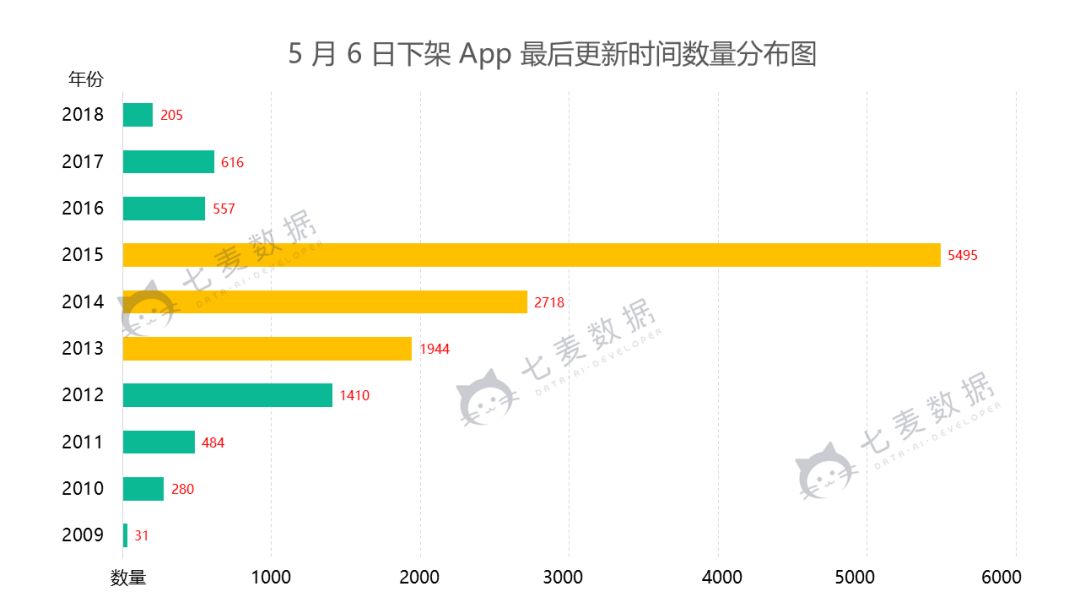 此次苹果清理的 App 最后更新时间集中在 2015——2017 年,而在 5 月 6 日时清理的 App 最后更新时间则集中在 2013——2015 年。说明今年,苹果开始对于清理的频率、力度逐渐加大。